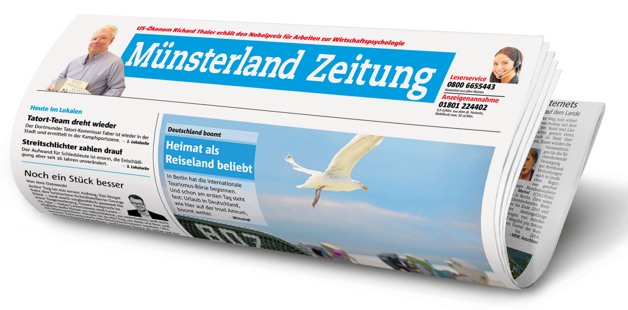 Die Münsterland-Zeitung ist eine wichtige Informationsquelle über Politik und Wirtschaft, Veranstaltungen und Termine im ganzen Münsterland.
